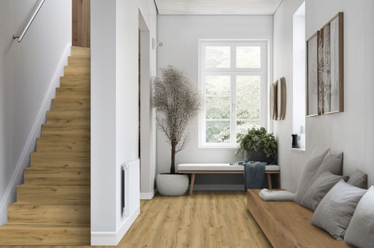 Dank seiner fabelhaften Produkteigenschaften macht Rigid Vinyl im ganzen Haus eine gute Figur. Der Boden ist wasserfest, bärenstark, fußwarm, stabil, energieeffizient und sowohl für Renovierer und Neukreierer geeignet.
